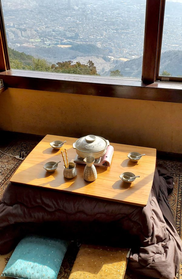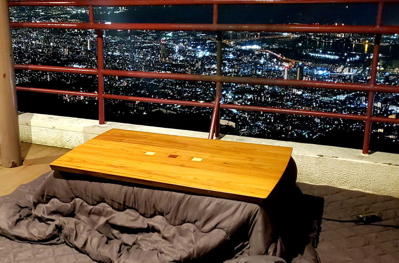 气温稍高的日子里,还可以把被炉搬到阳台里这样。一边坐在温暖的被炉边,一边欣赏冬季神户的街景,真是的非常奢侈的享受吧。