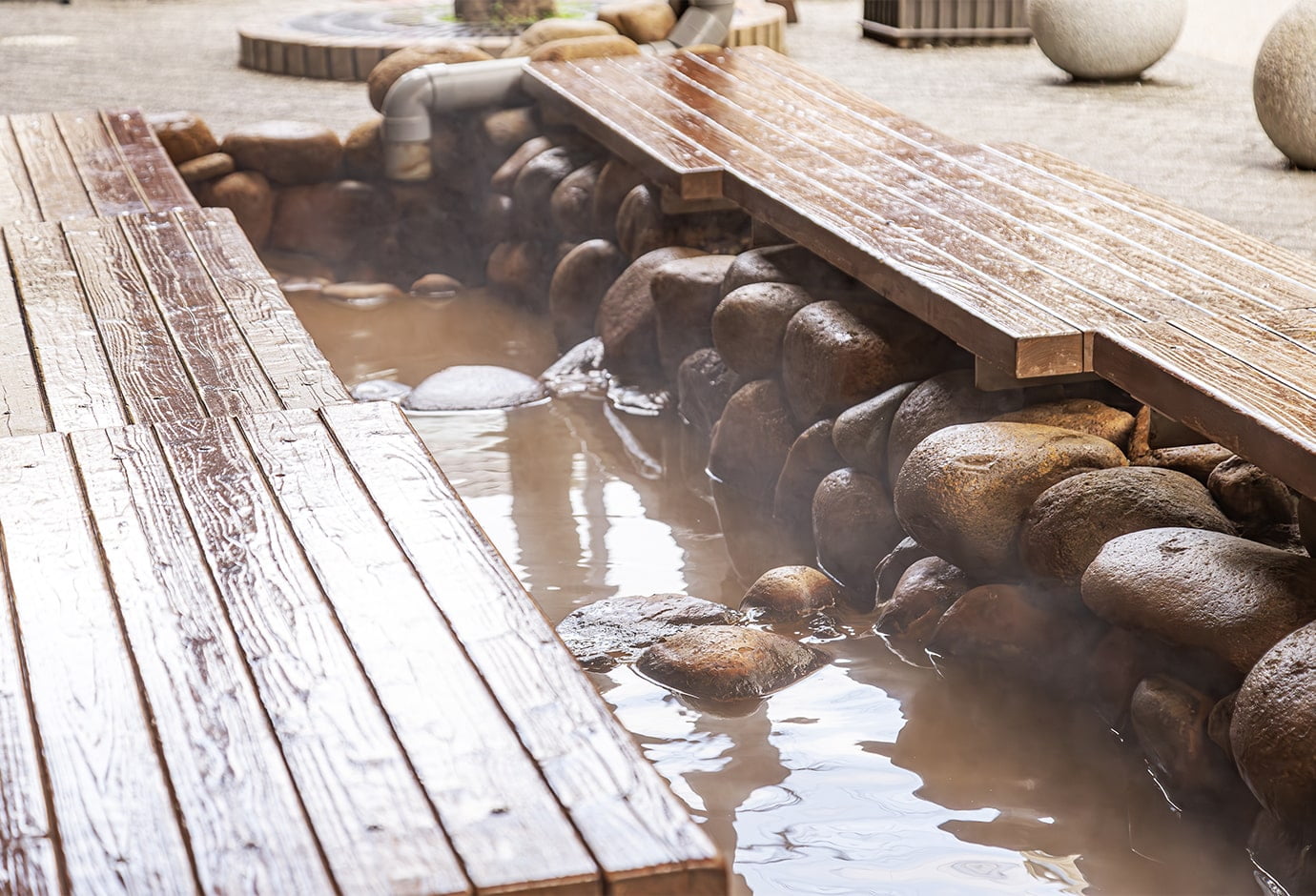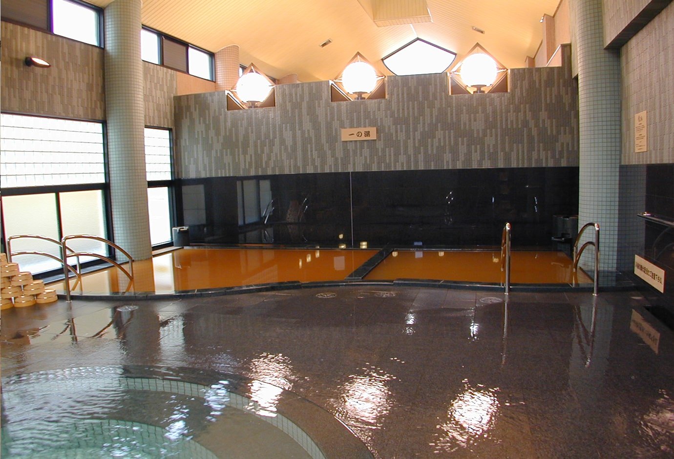 可以一日游享受著名温泉的公共浴场。这是一种深红棕色的含铁氯化钠强盐温泉,被称为“金泉”,深受当地常客、登山者和游客的喜爱。