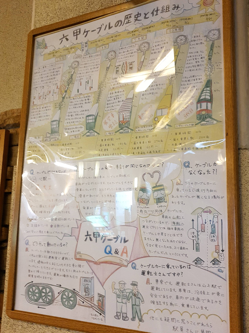 The inside of the station building has lots of fun exhibits for families to learn and appreciate that include an illustrated and easy to understand guide about the cable cars, nostalgic early designed plastic models of the cars, and a fun comic foreground, and more.
