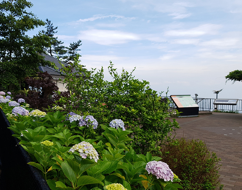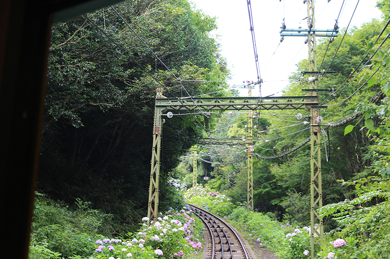 The window next to the car operator’s booth at the very front of the upper car allows one to see a myriad of hydrangea flowers along the long and continuing path – sure to fill you with excitement.