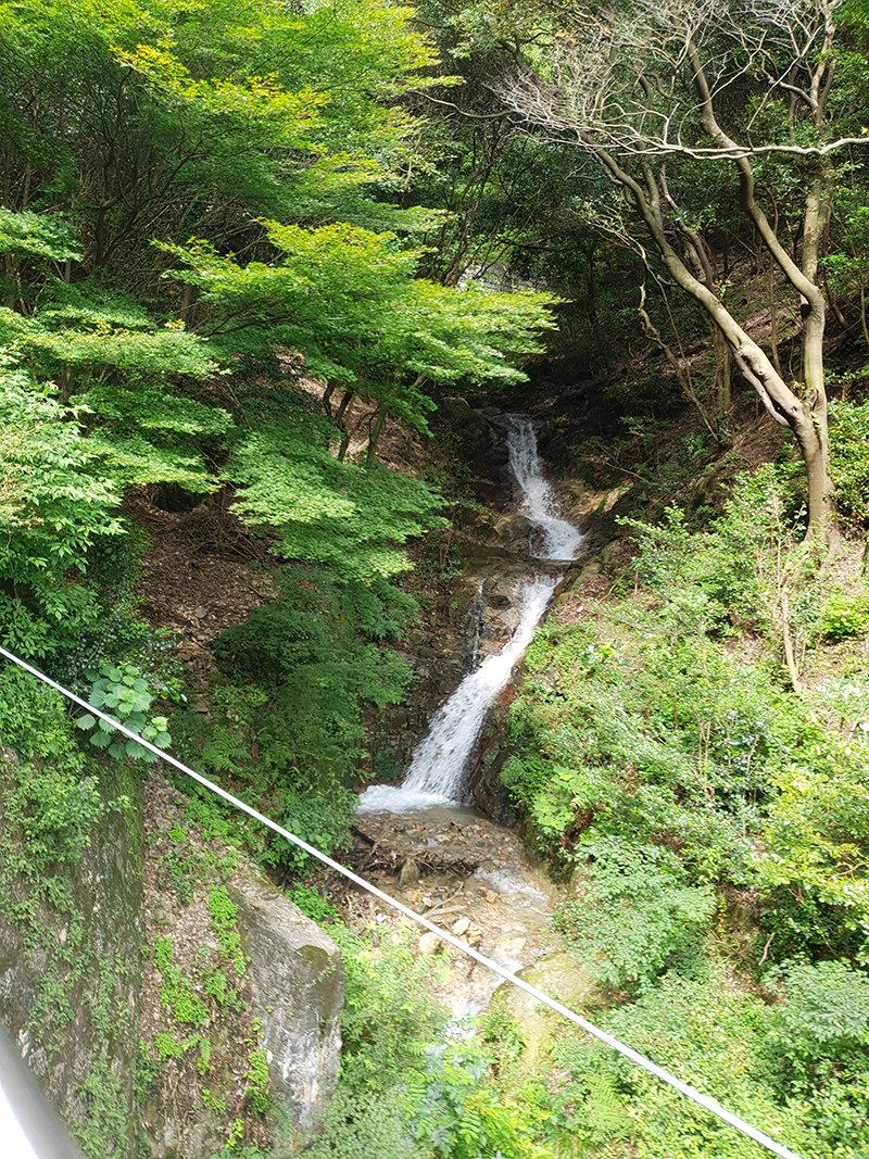 The lower car has seats and flooring made from natural wood. The very open atmosphere with no windows and a see-through roof will surely let you experience the lush nature of Mt. Rokko, such as the cool mountain breeze, the woody fragrance of the forest, and the pleasant harmony of the waterfalls.
