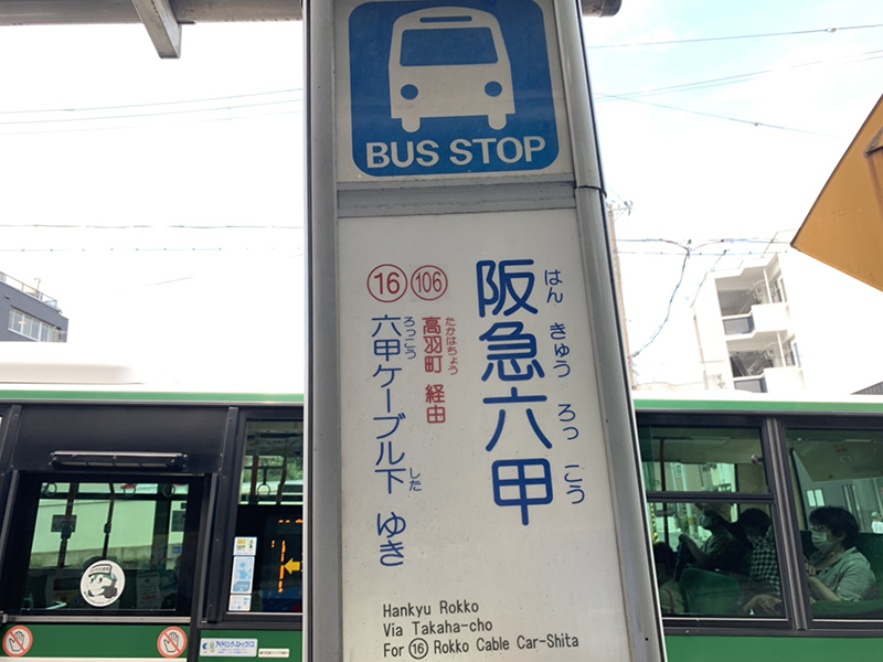 *The #16 bus stop at the Hankyu Rokko Station is right in front of exit 3.