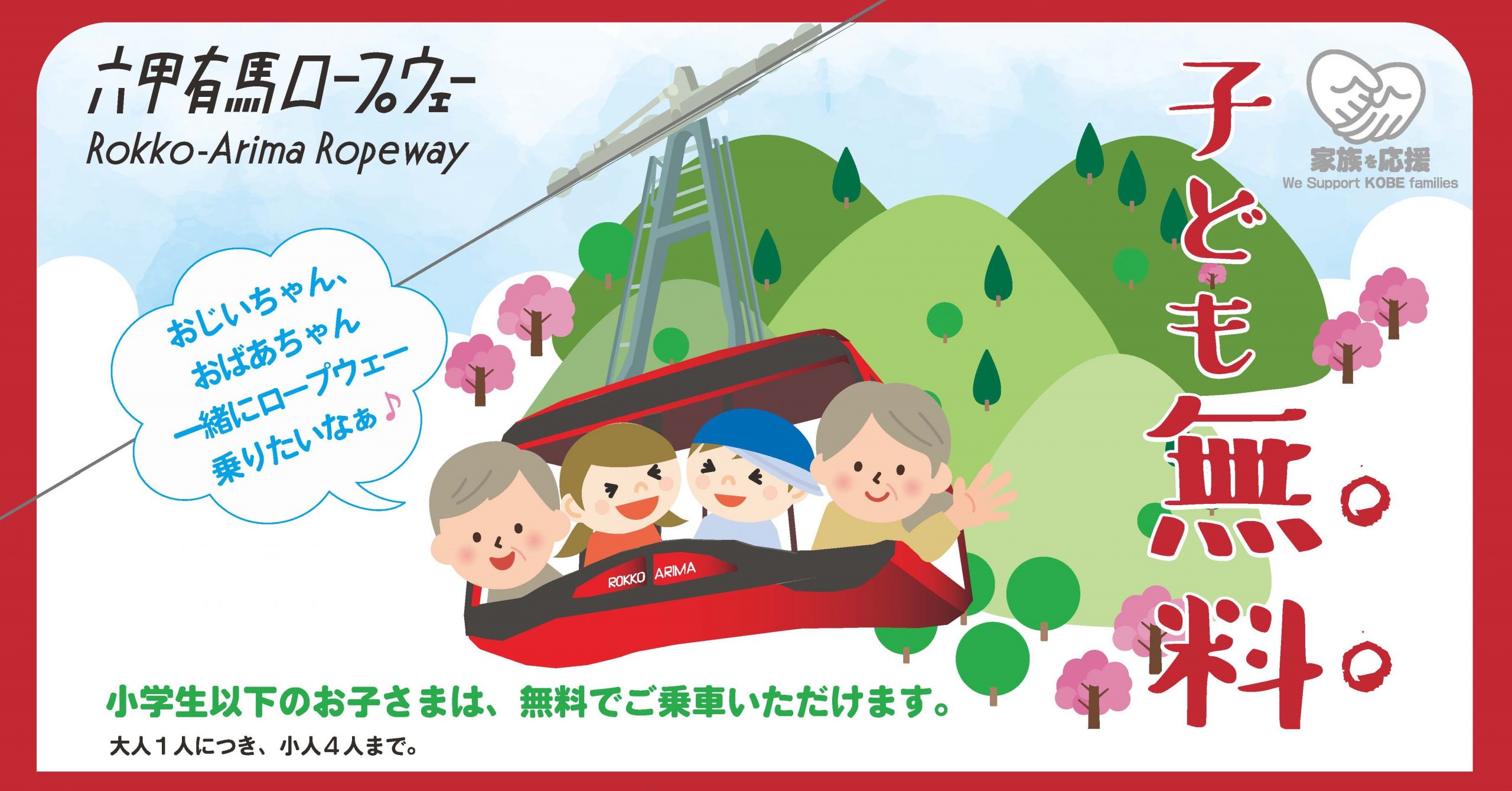 As spring has arrived in Kobe and it’s beginning to get warmer day by day, the Sakura (cherry blossom) viewing season is just around the corner. It’s time to get out of crowded and tight places and go see the Sakura! Under the fresh air with cherry blossoms, let’s inhale and bask in the fresh spring vibes of the Rokko and Arima Onsen area. Come along with your family members, a wide variety of facilities with abundant nature are waiting for you!