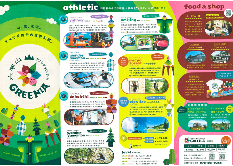 On April 3rd, 2021, a new open-air amusement facility “Mt. Rokko Athletic Park GREENIA” was just born on a huge property of Mt. Rokko. GREENIA is one of the largest outdoor adventure parks in Japan that consists of 164 kinds of obstacle courses and playground equipment.