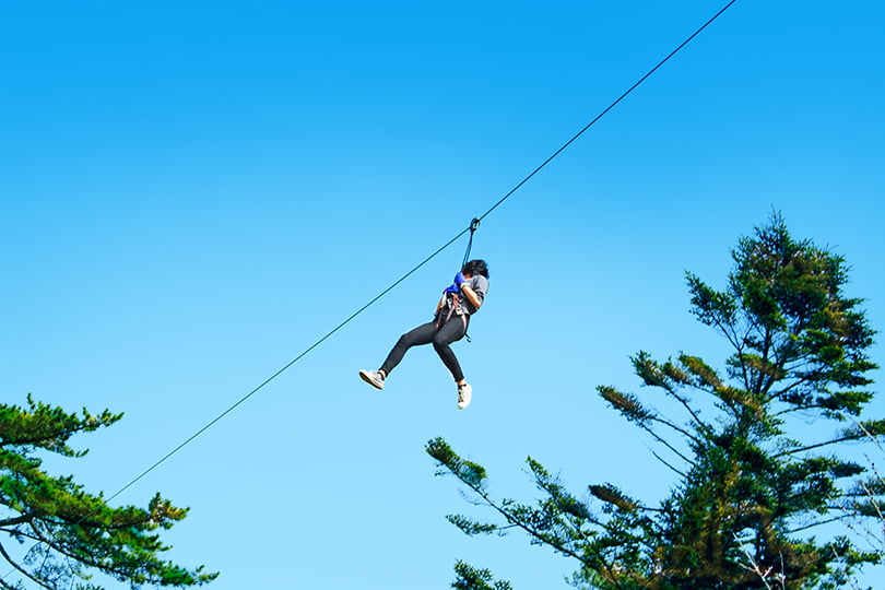It’s the best course for those who want to feel nature and experience something extraordinary. mecya forest provides you with an aerial outdoor adventure in the natural forest. Climb to the scaffolds on the trees that are 2-15 meters above the ground and try a variety of attractions of the obstacle course, using logs, ropes, and zip slides. Concerning the safety precaution (fall prevention), as the safety climbing harness belt is tightly attached between your body and the guide rope of the attraction, you can challenge your adventure safely without any anxiety.