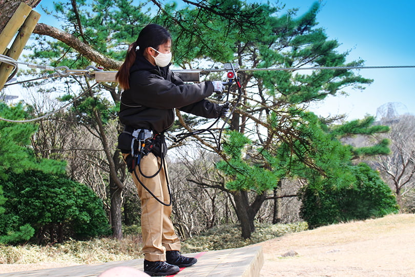 At the reception counter, please sign up for the slide. (*Zip ticket fee (1,000 yen) needed)