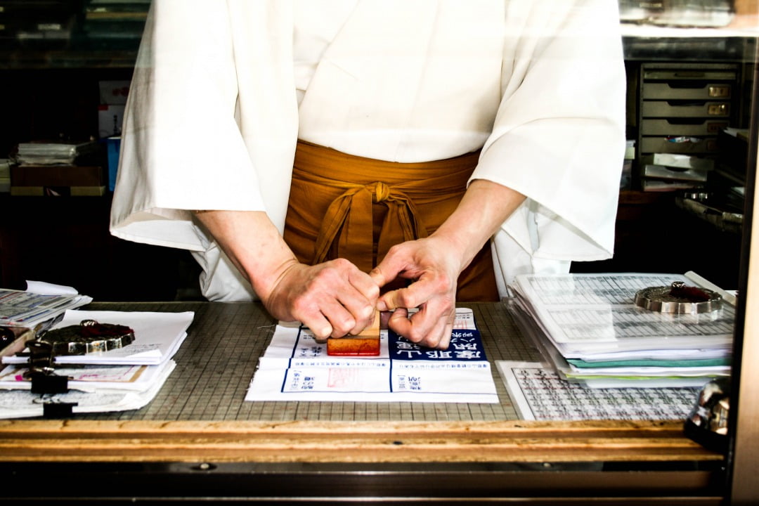 Check out the shelf and purchase the Tenugui stamp sheet (888 yen) first, and then collect 4 stamps that include the one at Hotel de Maya. (*closed at the end of March, 2021)