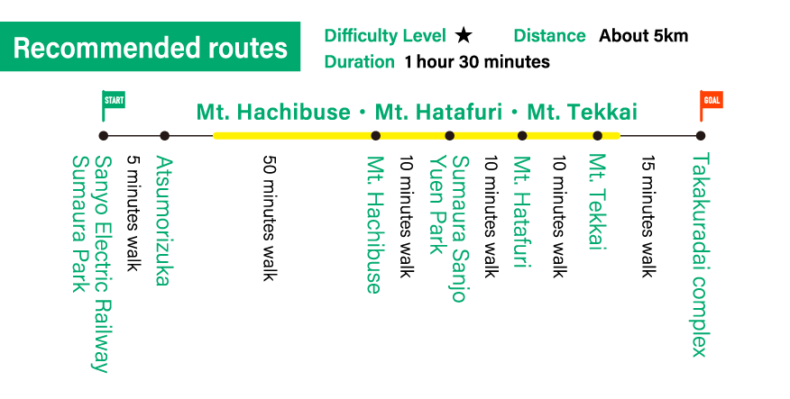 The closest station to the starting point is Sumaura Park station on the Sanyo Electric Railway.