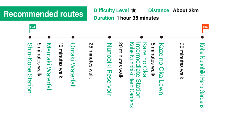 Kaze no Oka Lawn is located just outside the Kaze no Oka Intermediate Station of the Kobe Nunobiki Ropeway.