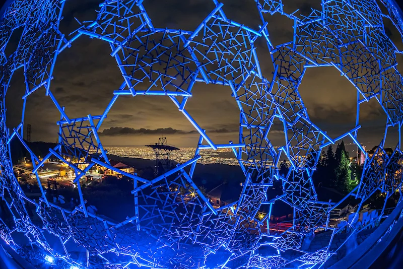 In the daytime, the Rokko-Shidare Observatory shows its unique and strong presence. On top of that, at night, it completely changes its appearance with a romantic aura. The artwork of the Rokko-Shidare Observatory is well-known as 「Lightscape in Rokko」that expresses the four seasons of Mt. Rokko by using the latest LED lighting technology.