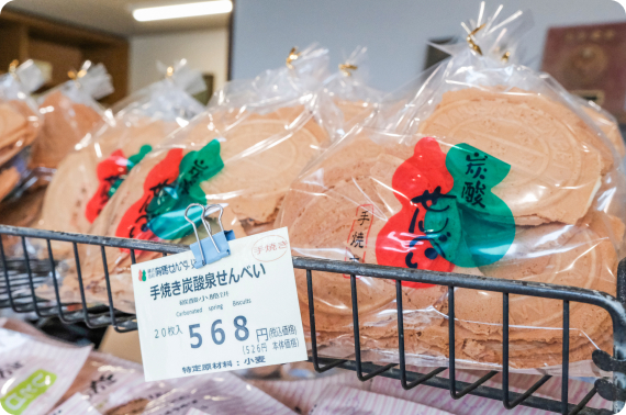 Come and be amazed at the sheer variety and diversity of senbei crackers made from the local carbonated spring water!