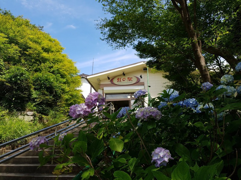 After the cable car lands at the station, transfer to the Maya Ropeway. It takes about 2-3 mins. until Niji no Eki Sta. The hydrangeas were in full bloom this day. There’s a large thermometer at the Maya ropeway – the temperature at Niji no Eki Sta. was about 22℃ (71.6℉). Very cool in comparison to the 26℃ (78.8℉) at Maya Cable Sta. (departure point).