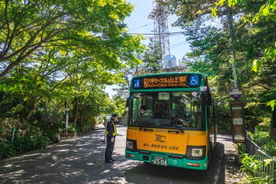 Depuis la gare "Maya Ropeway Sanjyo", prenez la navette "Rokko Maya Sky Shuttle Bus" jusqu'au Mont Rokko Silence Resort !