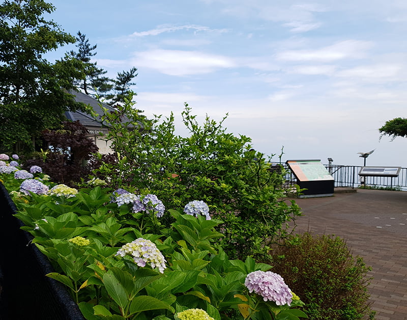 파란 하늘과 바다, 하얀 구름, 그리고 초록이 넘치는 롯코산 산줄기와 경치에 가슴이 탁 트입니다.
