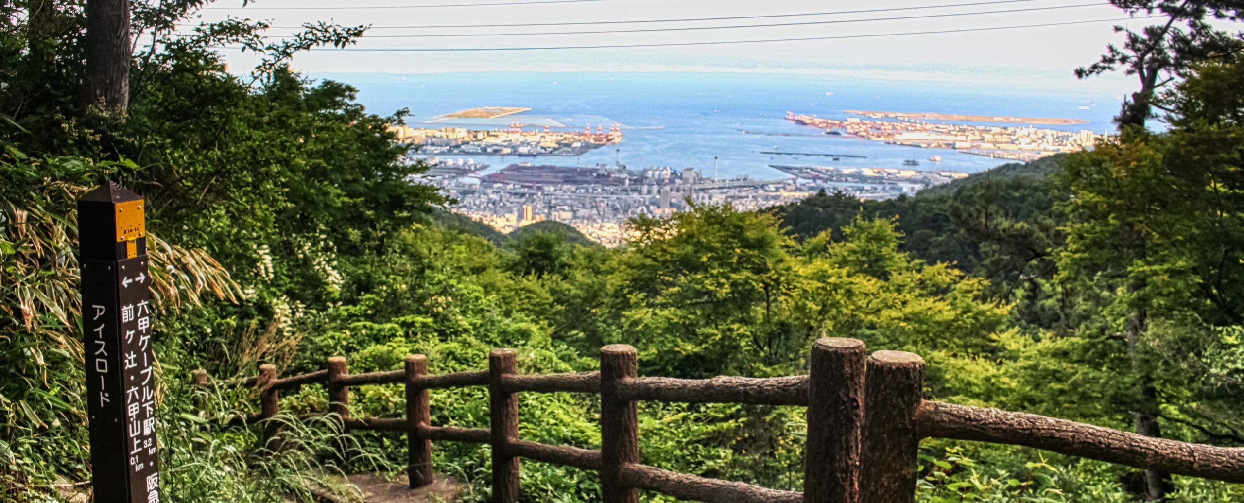 롯코 케이블 시타 역에서 아이스 로드 등산로 출입구까지는 우라롯코 드라이브 웨이의 구 도로를 걸어 올라와야 합니다. 도보가 따로 나 있지 않은 차도이기 때문에 주의를 기울여 걷다 보면 신롯코오오하시 대교가 눈에 들어옵니다. 등산로 출입구까지 걸을 때는 교통 상황에 주의하세요!