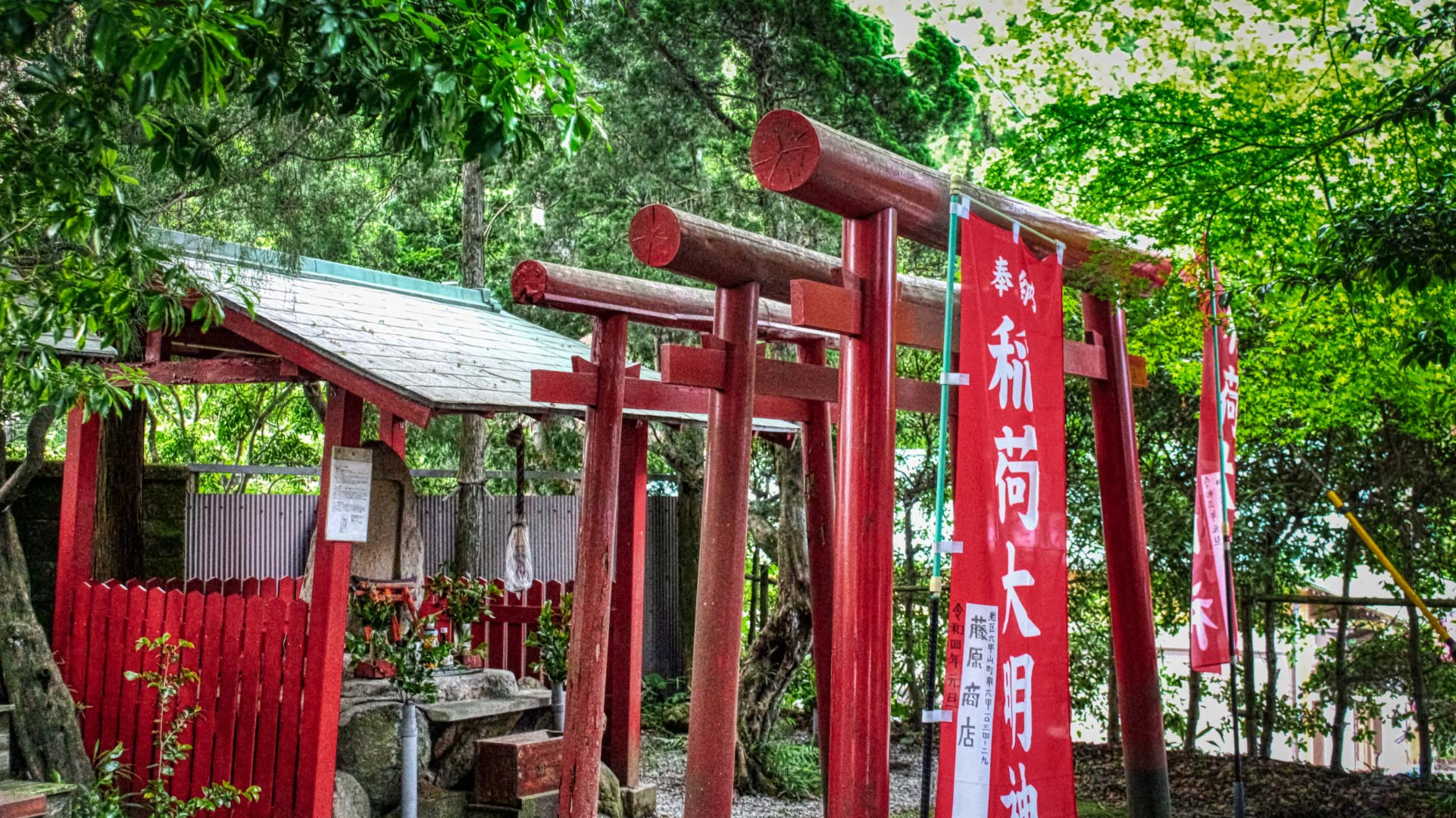 마에가츠지 쪽 아이스 로드 등산로 바로 앞에 있습니다. 계단을 오르면 작은 신사가 나옵니다. 도리이 현판에는 두 기둥의 신이 깃들어 있다고 하는데요. 시라히게(흰 수염), 시라기쿠(흰 국화)는 여우 부부라고 합니다.