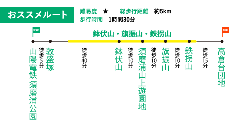 登山口最寄り駅は、山陽電鉄「須磨浦公園駅」下車すぐ。