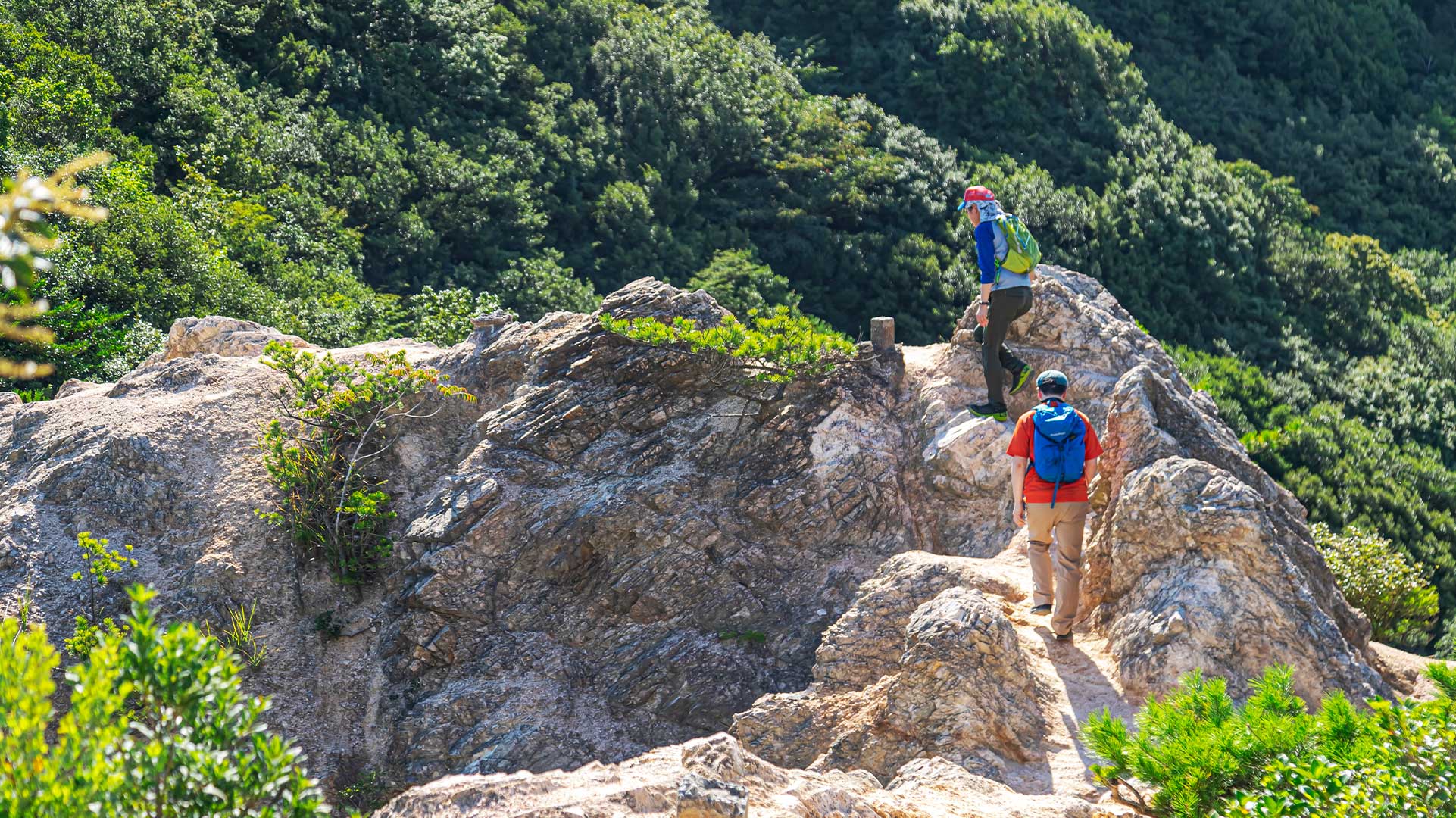 風化した花崗岩の瘦せ尾根は、迫力満点!幅が狭い部分もあるので、慎重に。ハイカーとすれ違う時は、譲り合って安全に。雨の日は滑りやすくなる為、初心者の方は避けた方がよい。