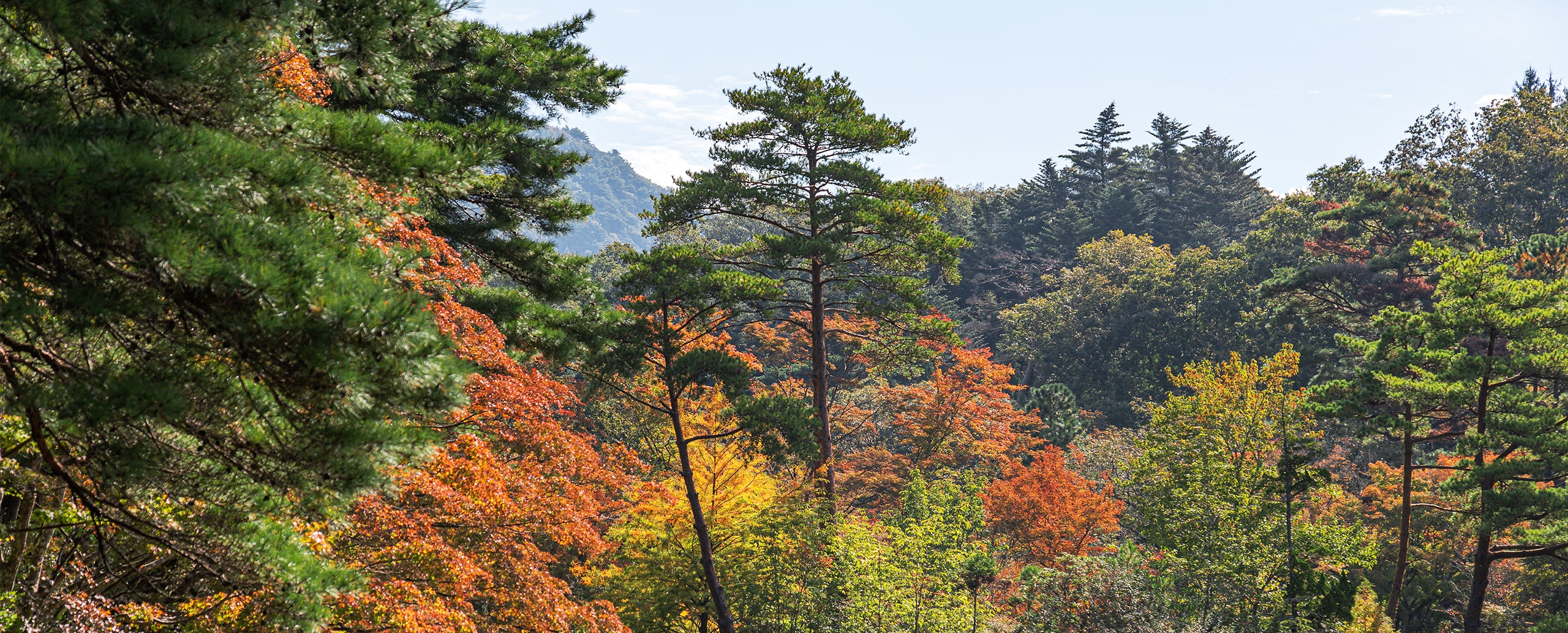 シアトルの森は、他のエリアよりも早い見ごろを迎える。モミジバフウやユリノキの紅葉ともに、常緑のセコイアメスギなどと一緒に彩り鮮やかな紅葉の景色が広がる。