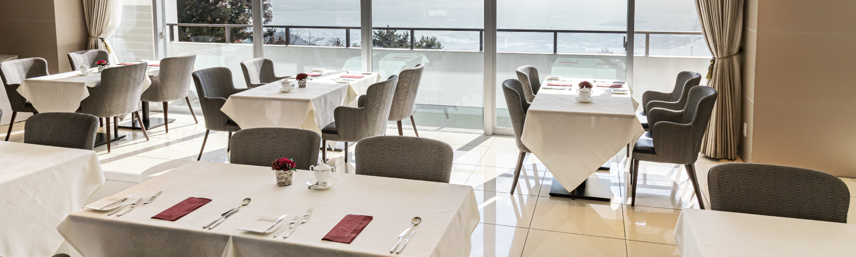 窓の外に広がる眺望を楽しみながら優雅なランチ。
