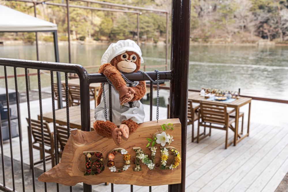 修法ヶ原池のほとりに佇むボートハウスの桟橋に浮かぶレストラン。