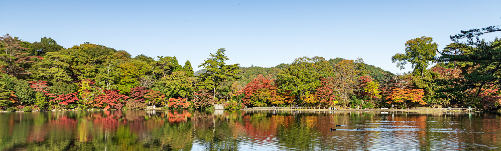 公園内にある修法ヶ原池のほとりは、六甲連山でも特に美しい紅葉スポットのひとつとして、多くの人々に親しまれている。
