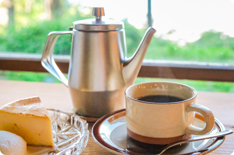 ・コーヒー 900円 / チーズケーキ 1,100円 ※セットで注文の場合は150円引き