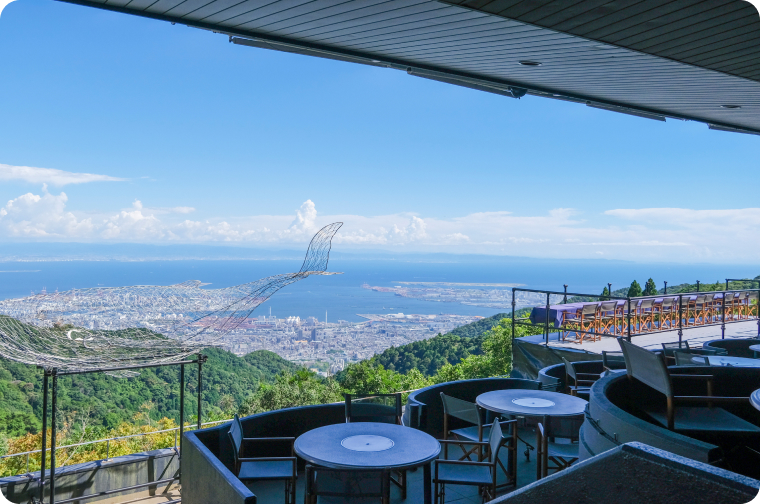 六甲山サイレンスリゾート【空のダイニング】は、神戸から大阪までを一望できる六甲山でも特別な場所。