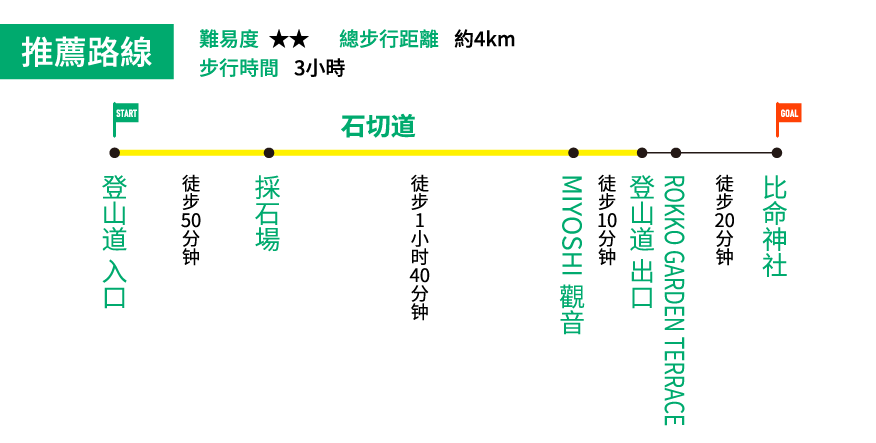 從住吉道分岔,通往ROKKO GARDEN TERRACE的路線。六甲山的花崗岩被稱為御影石,曾經在近畿一帶被使用,這裡是花崗岩開採和運輸的道路。豐臣秀吉的大阪城築城的石牆用的也是這個花崗石。
