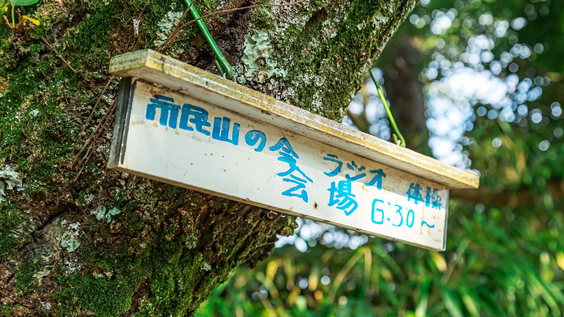 坐落在雌岡山山頂的神出神社。當地居民每天登山,從早上6:30起做廣播體操。