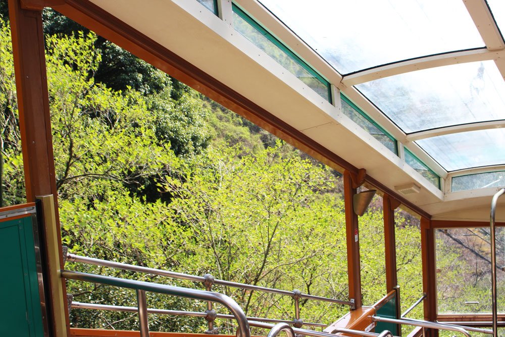 A few minutes before arriving at the Arima Onsen Station, the car approaches a special point where the slope suddenly becomes much steeper than the regular route. The feeling of falling while passing through the point will probably remind you of an amusement ride at a fun park. It’s a little thrilling, scary, yet a lot of fun! Please don’t close your eyes in fear because it’s absolutely safe.