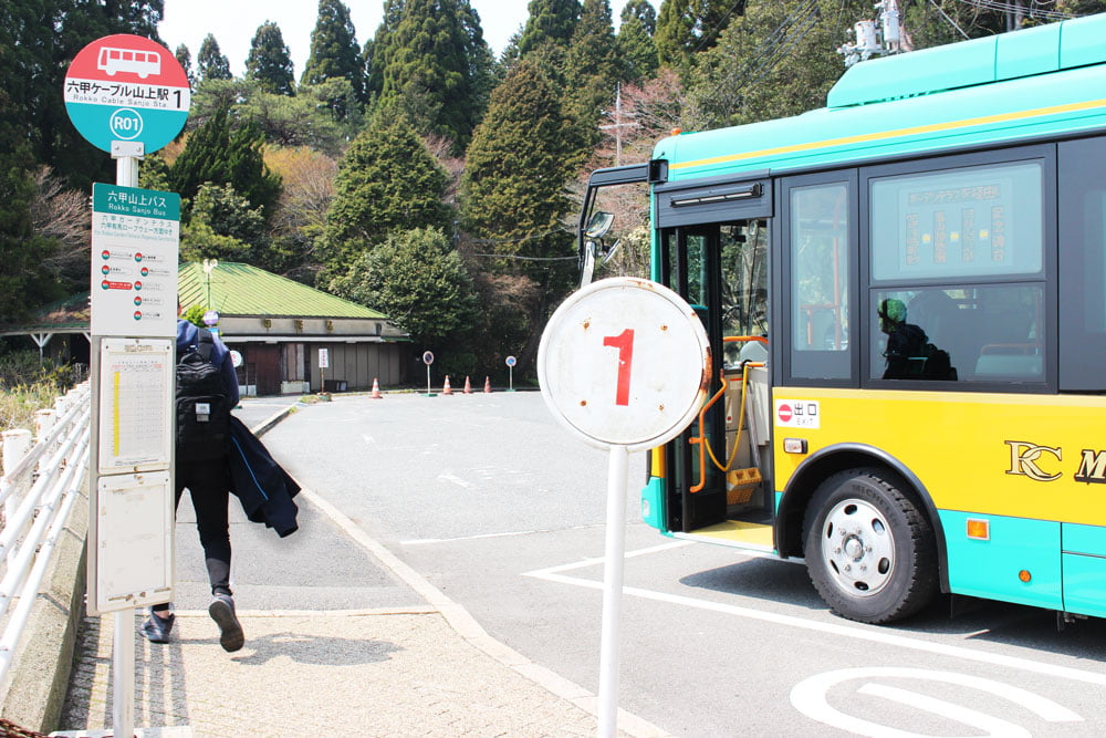 After leaving the cable car station, please proceed to bus stop #1 and take the Rokko Sanjo Bus to the Rokko Sancho Station. The duration of the bus ride is about 13 minutes.