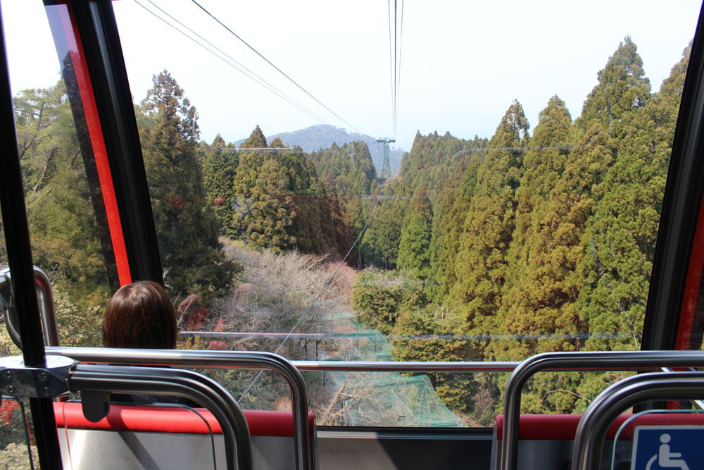Along the way to the mountaintop, bright green trees and blooming spring flowers will attract your eyes. You’ll be surprised by the car closely passing by in the opposite direction. The car will arrive at the Rokko Sanjo Station (the mountaintop) in about 10 minutes.