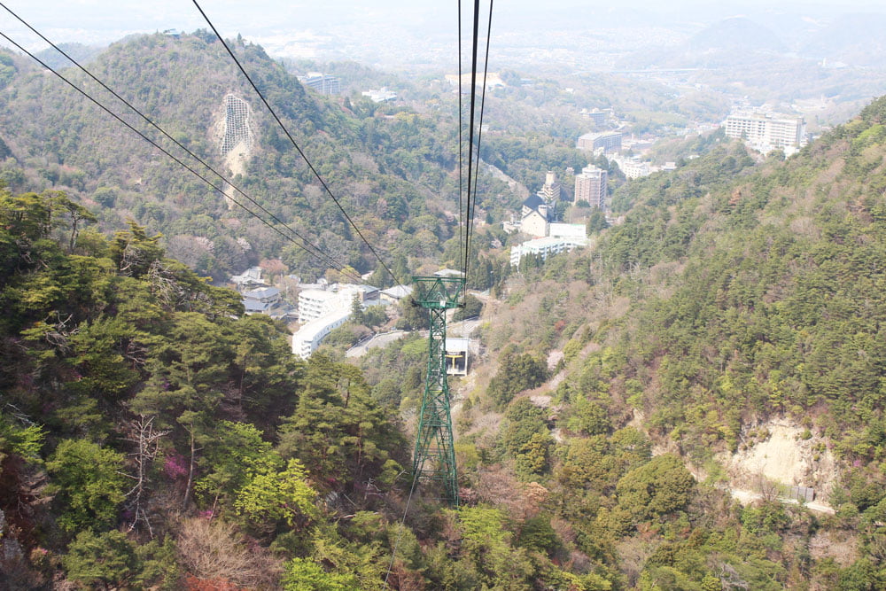 The Rokko-Arima Ropeway runs between the mountaintop of Mt. Rokko (Rokkosan) and the Arima Onsen (hot spring) area. This route is best for those who would like to feel the magnificent nature of Mt. Rokko, to experience the breathtaking view from the Ropeway, and to relax at the stress-free, tranquil Arima Onsen.