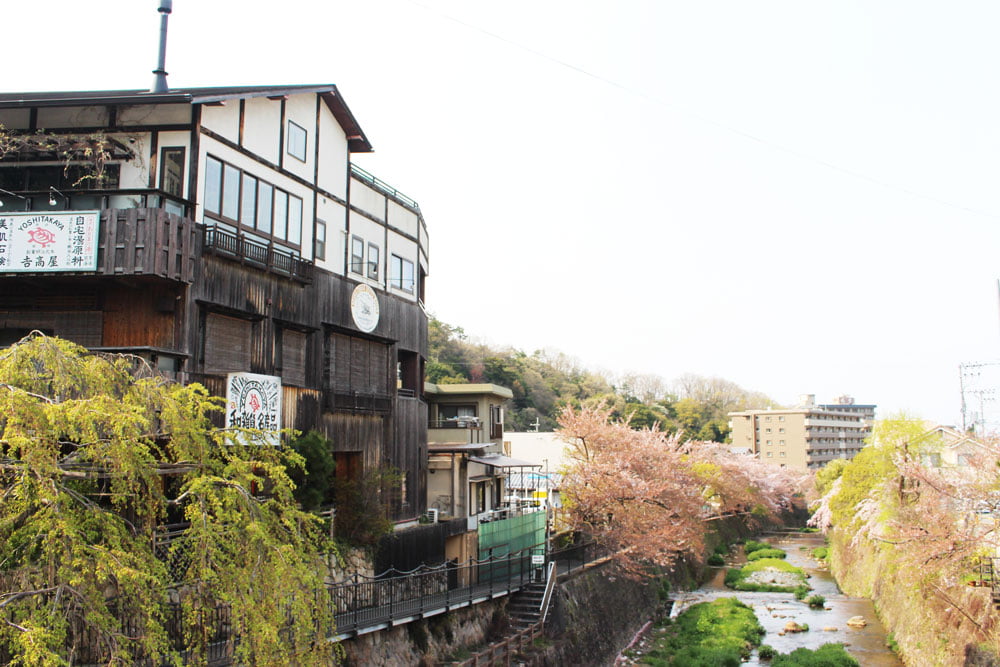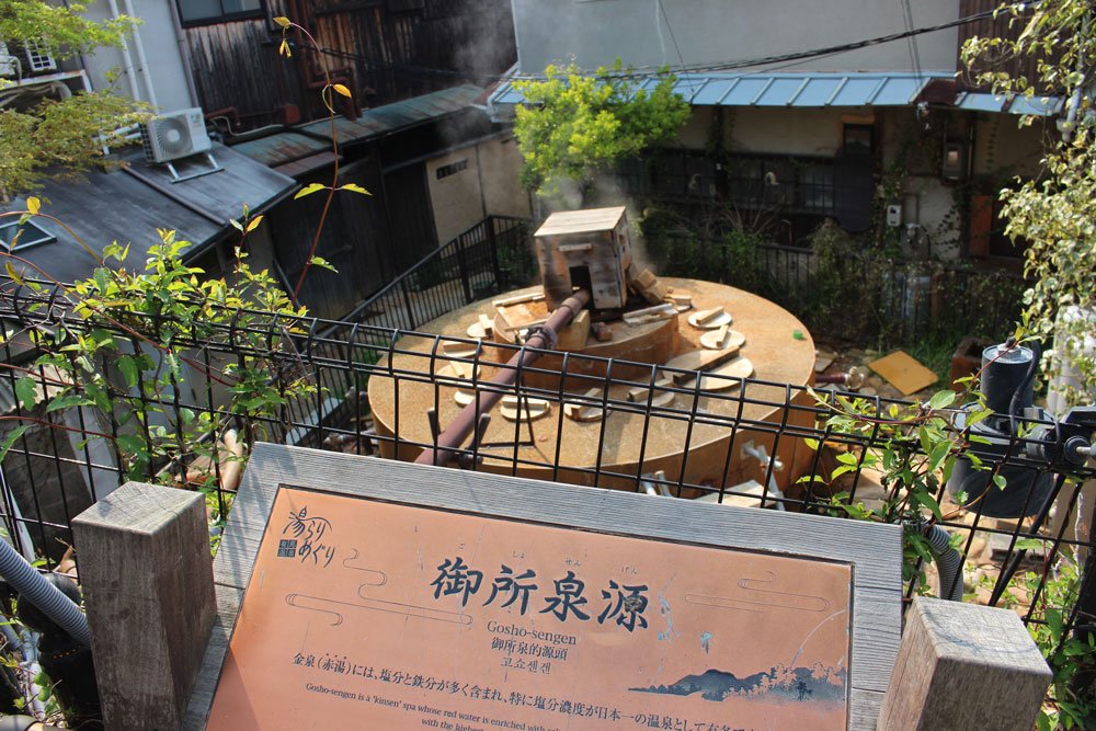 While wandering around, you can find hot spring sources (seven in total) in the area. This one is the “Gosho Sengen”.