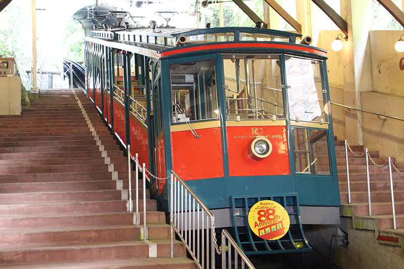 Rokko Cable Shita Sta. sits nestled at the foot of Mt. Rokko in a retro cabin style building. This is the second installment of the station, the first having fallen to the Great Hanshin Flood in the 13th year of the Showa Period (1938). The distance between Rokko Cable Shita Sta. and Rokko Cable Sanjo Sta. is 1.7 km and the duration is about 10 minutes. The difference in elevation is approximately 493m.