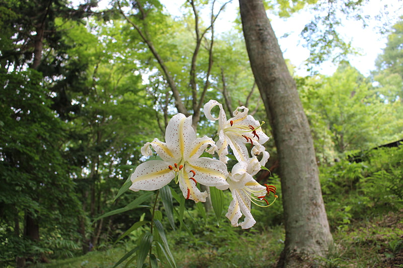 This Golden-Rayed Lily furls into a grand and powerful-looking flower and gives off a gentle, yet wonderful, florid aroma. The Golden-Rayed Lily is a flower found on mountainsides and in forests and can be spotted in various places within the Rokko Alpine Botanical Garden.