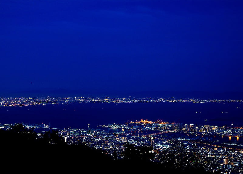 ขึ้นบันไดจากสถานี Rokko Cable sanjo ที่จะเห็นทั้งวิวเมืองโกเบและวิวพาโนรามาที่เห็นไปถึงโอซาก้าและวาคายามาได้